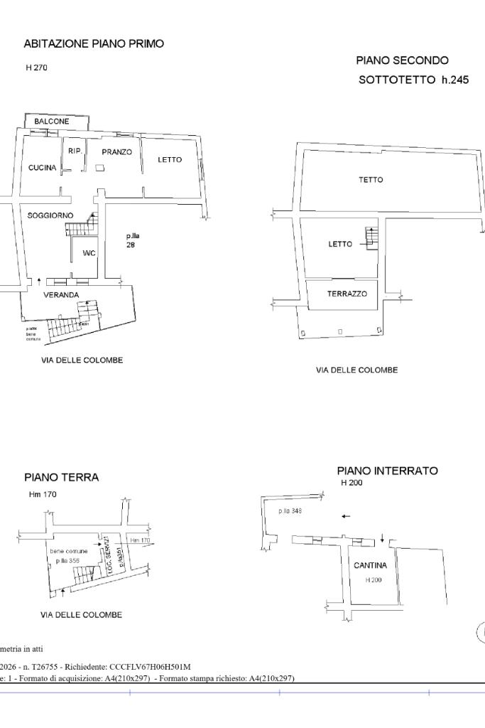 Completano la proprietà due cantine al piano seminterrato, la prima di circa 10 mq e la seconda di circa 40 mq.